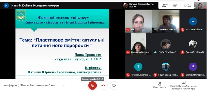 27 березня 2021 року студенти Фахового коледжу «Універсум» Київського університету імені Бориса Грінченказ нагоди Години Землі брали участь у І етапі студентської науково – практичної онлайн-конференції «Екологічна компетентність НУШ».