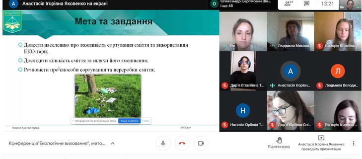 - "Тверді побутові відходи в Україні: виклики та перспективи". Доповідач Яковенко Анастасія, група ДОфмб-1-20-3.0д;