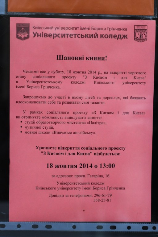 18 жовтня 2014 року в Університетському коледжі відбулось урочисте відкриття чергового етапу соціального проекту "З Києвом і для Києва".