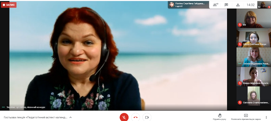 Пані Леся ознайомила присутніх із характерними жанрово-функціональними особливостями та рисами всіх циклів календарно-обрядових пісень. Під час лекції Леся Володимирівна демонструвала свої власні композиції календарно-обрядових пісень, транслювала відеофрагменти концертних номерів. Композиторка наголосила на важливості етнопедагогічного пісенного виховання дітей, що базується на засадах патріотизму та національної ментальності.