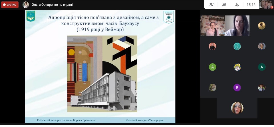 29 квітня 2021 року голова циклової комісії образотворчого мистецтва і дизайну Овчаренко Ольга Миколаївна запросила всіх охочих приєднатись до онлайн-вебінару «Плагіат в образотворчому мистецтві, його прояви та шляхи подолання».