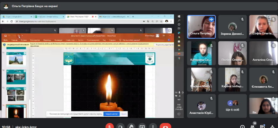 Студенти, переглянувши історичні документи, фото-, відеоматеріали тих трагічних подій, ознайомились з причинами та сутністю Голокосту, який призвів до масового знищення євреїв та представників інших національностей, та через історію маленького хлопчика, який в листі із Варшавського гетто написав, що "в гетто метелики не живуть", усвідомили: аналогічна трагедія не повинна більше повторитись!
