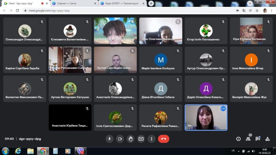 10 лютого 2022 року зі студентами групи ПРфмб-1-21-4.0д Фахового коледжу «Універсум» Київського університету імені Бориса Грінченка було проведено заняття з елементами тренінгу «Булінг в навчальних закладах».