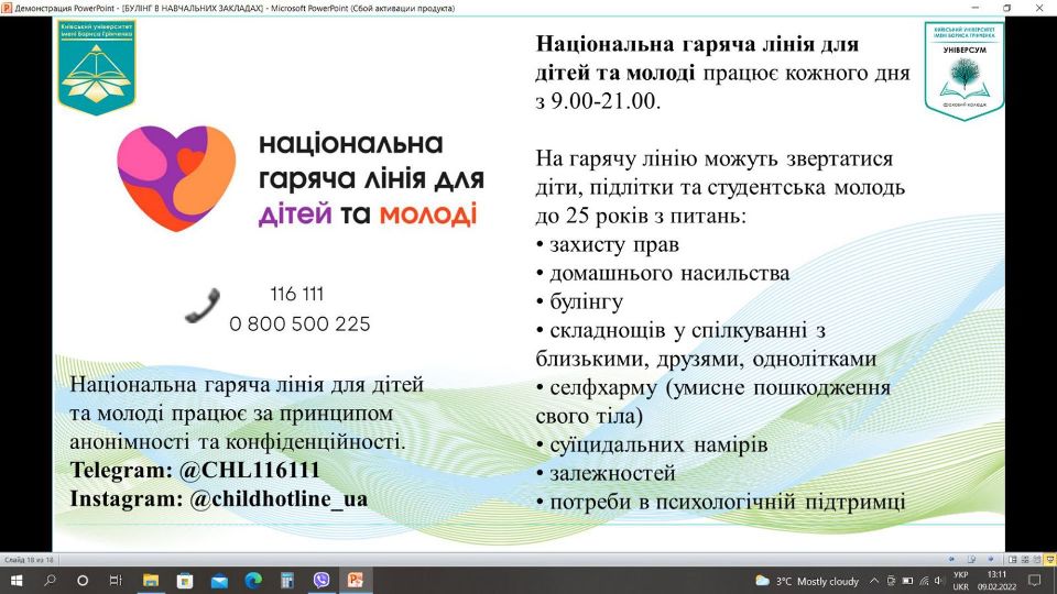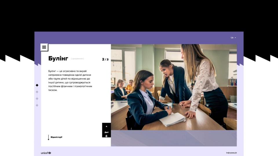 Студенти переглянули відеоматеріал та соціальні ролики, створені ЮНІСЕФ на протидію булінгу. Також отримали пам’ятку з координатами Національної гарячої лінії для дітей та молоді.