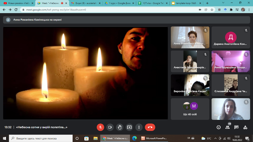 18 лютого 2022 року у групах ПОфмб-2-21-4.0д та СПфмб-1-21-4.0 двідбулася виховна година на тему "Небесна сотня у вирій полетіла…", присвячена Дню пам'яті Героїв Небесної Сотні.
