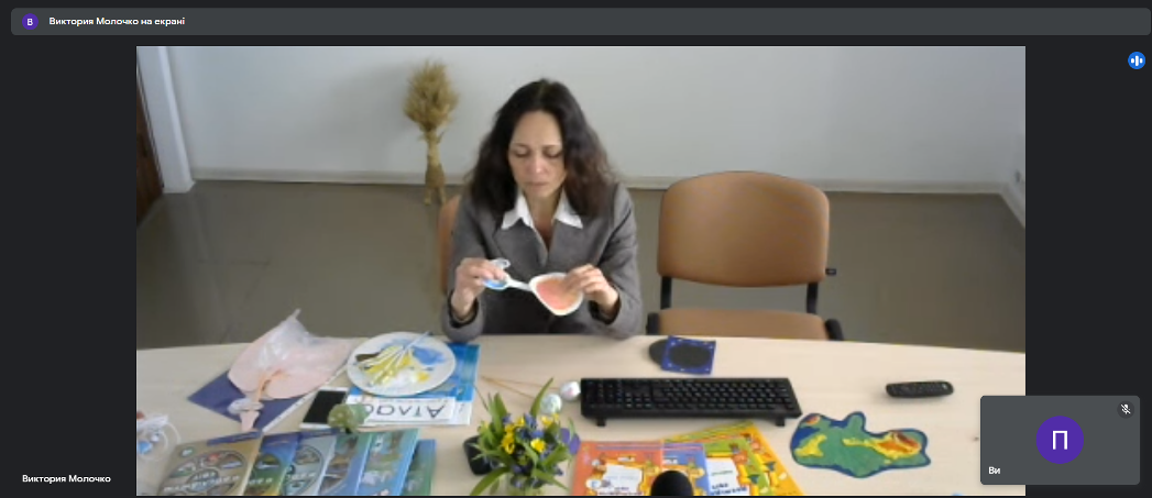 27 квітня 2022 року у Фаховому коледжі «Універсум» Київського університету імені Бориса Грінченка для студентів групи ПОмс-3-19-4.0д в рамках декади ЦК природничих дисциплін відбулася зустріч з провідним редактором Українського освітянського видавничого центру «ОРІОН», кандидатом географічних наук, арт-терапевтом Молочко Вікторією Валеріївною. Тема зустрічі: «Навчаємося граючи на уроках інтегрованого курсу «Я досліджую світ»».