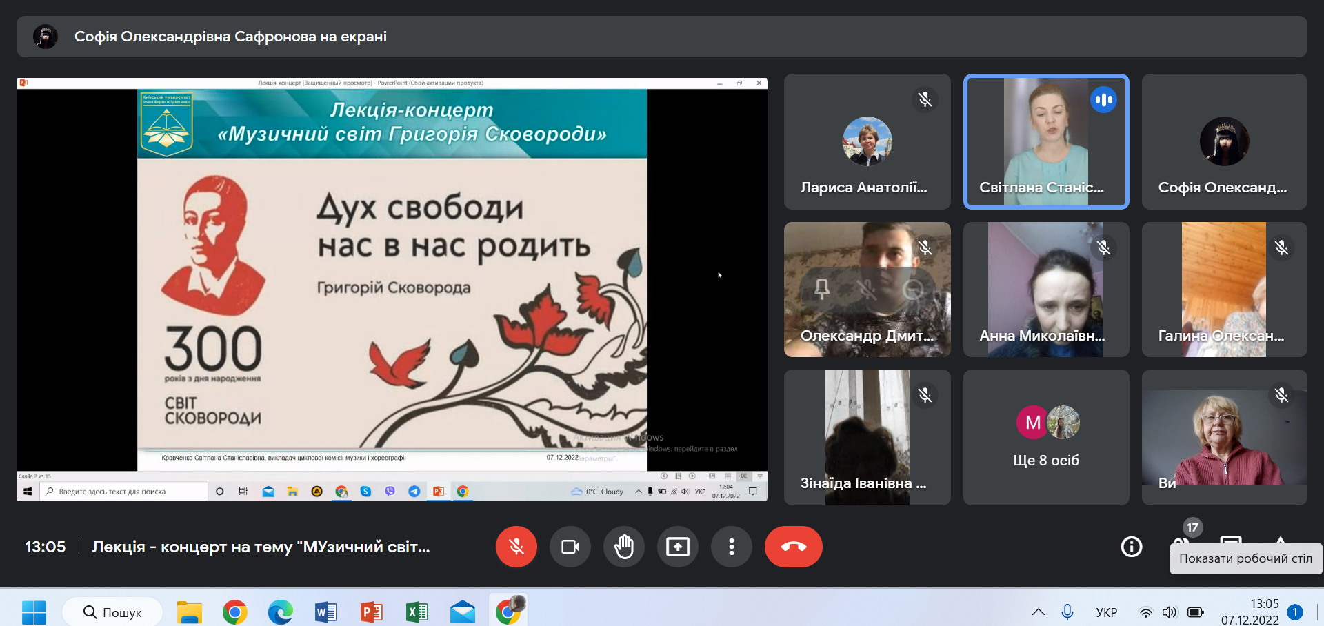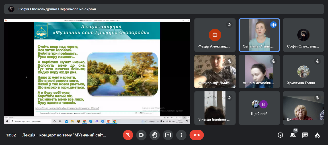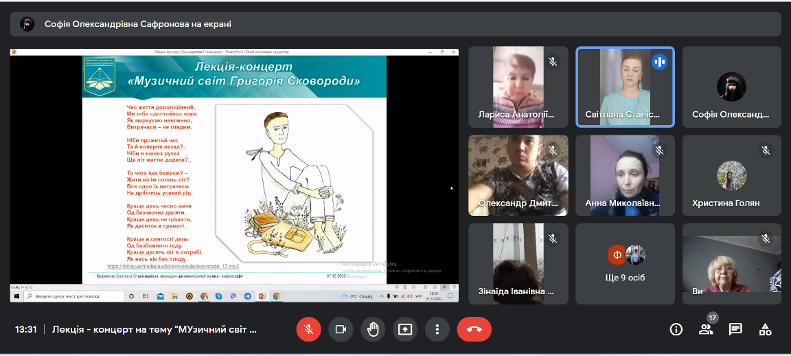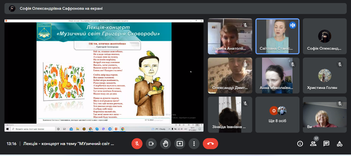 07.12 2022 року відбулася лекція-концерт "Музичний світ Григорія Сковороди" (до 300-річчя з дня народження видатного філософа, просвітителя, музиканта, поета).