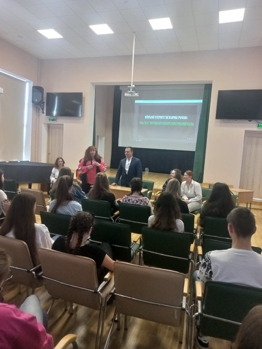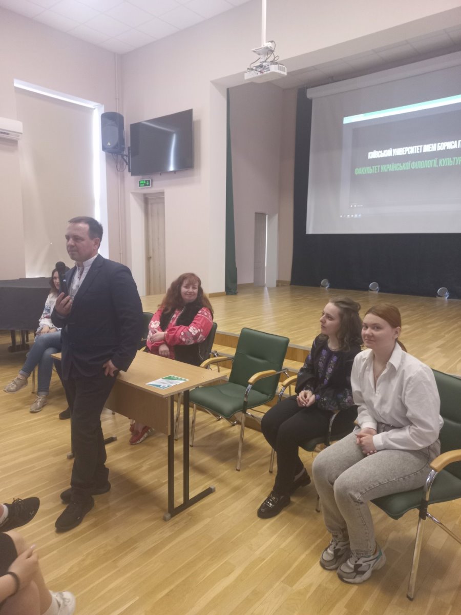18 травня 2023 року у Фаховому коледжі «Універсум» відбулася профорієнтаційна зустріч студентів випускних груп спеціальностей 012 Дошкільна освіта та 013 Початкова освіта з представниками кафедр Факультету української філології, культури і мистецтва Київського університету імені Бориса Грінченка: Оленою БРОВКО, завідувачкою кафедри української літератури, компаративістики і грінченкознавства, Михайлом ВІНТОНІВИМ, завідувачем кафедри української мови, Наталією ТЕРЕЩЕНКО, завідувачкою кафедри інформаційних комунікацій та студентами Факультету.