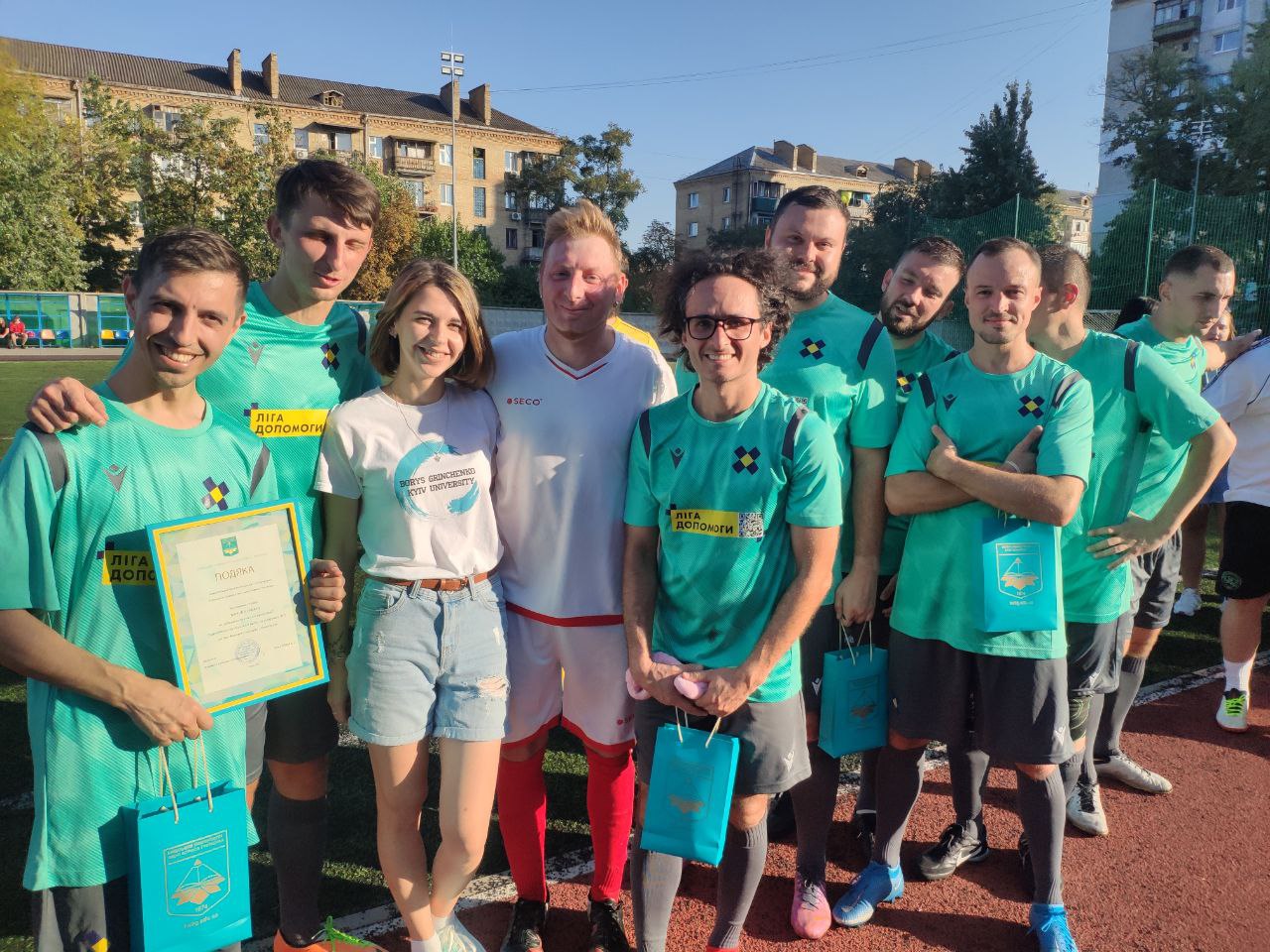 27 вересня у Фаховому коледжі "Універсум" відбулася найочікуваніша гра цієї осені - Благодійний футбольний матч на підтримку ЗСУ. На полі зустрілися команди Збірної Коміків та студентів і викладачів Фахового коледжу "Універсум". У результаті запеклої та надзвичайно емоційної гри з рахунком 8-5 першість здобула Збірна Коміків. Та спільну перемогу ми отримали разом, адже майже завершили збір і на сьогодні маємо 25 000 грн на потреби військовослужбовців, які наразі проходять реабілітацію в Головному військовому клінічному госпіталі. Ми надзвичайно вдячні Збірній Коміків у складі Артема Домницького, Ігоря Ласточкіна, Івана Люлєнова, Олександра Фененко, Олександра Крючкова, Олександра Небави та інших за підтримку та нашу спільну маленьку перемогу.