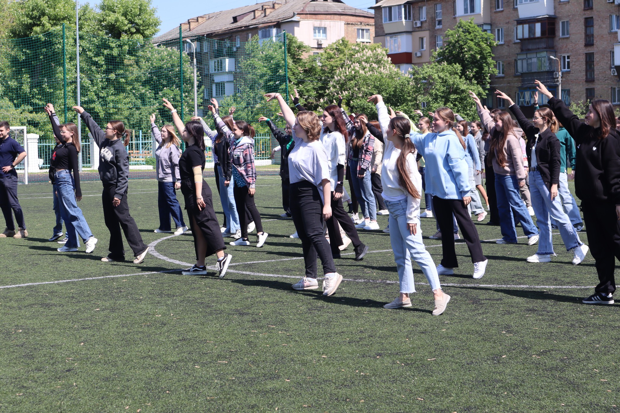 09.05.2024 р. у Фаховому коледжі "Універсум" відбувся танцювальний флешмоб до Дня Європи в якому взяли участь понад 100 студентів різних спеціальностей Коледжу. Українці - частина великої родини європейських держав, у нас спільні цінності та прагнення. Та головним для українців є прагнення до миру та перемоги! Адже саме українські Воїни стоять на захисті не тільки свободи, незалежності та української державності, але й захищають усю Вільну Європу.