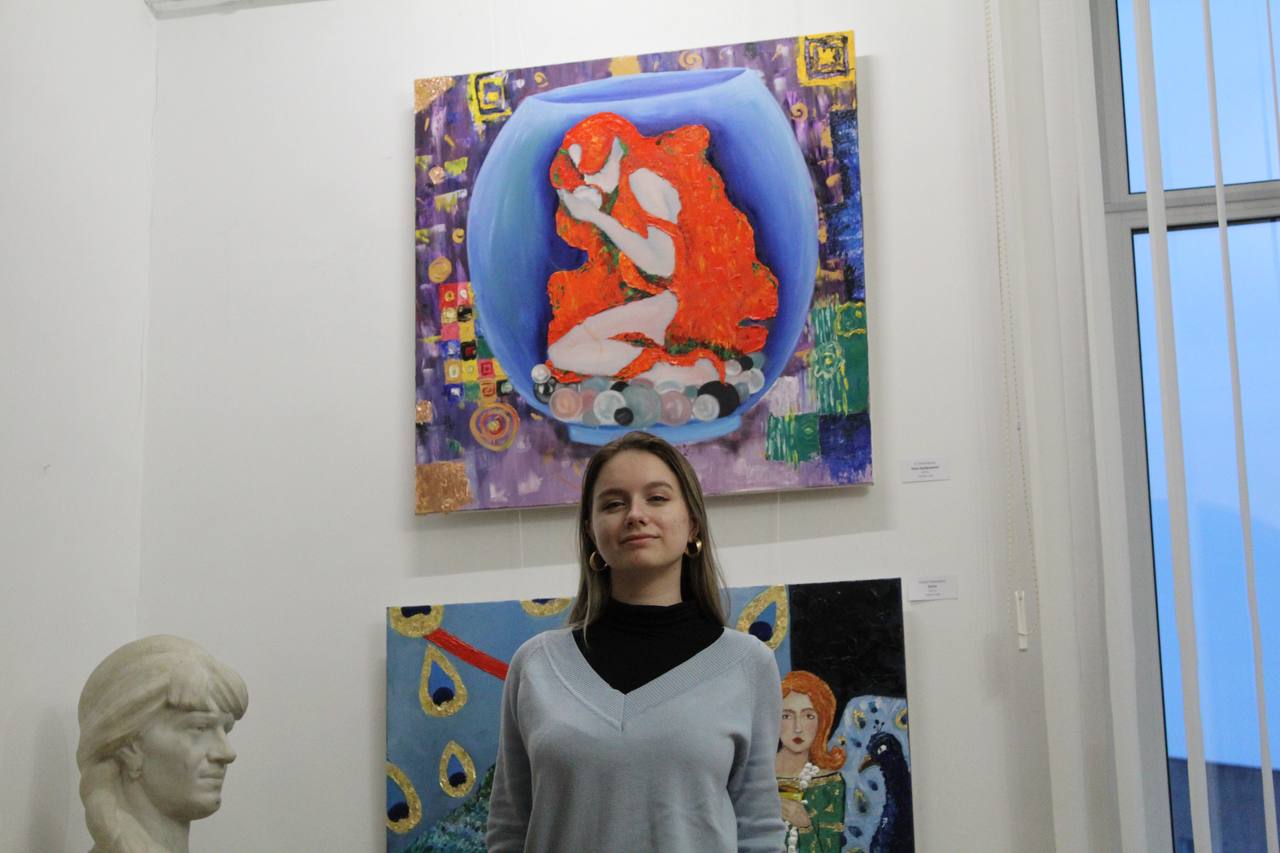 В експозиції беруть участь твори студенток третього та четвертого курсу: Жадан Вероніки, Баян Ксенії, Гаврюшенко Каміли, Голенговської Катерини, Гончаренко Анастасії, Демченко Яни, Кондрашевої Марії, Кузьменко Катерини, Міхно Анастасії, Остапко Анастасії, Сладковської Аліни та Юран Марії. Серед викладачів Коледжу передставлено творчі роботи Ярослава Білика та Людмили Соченко.