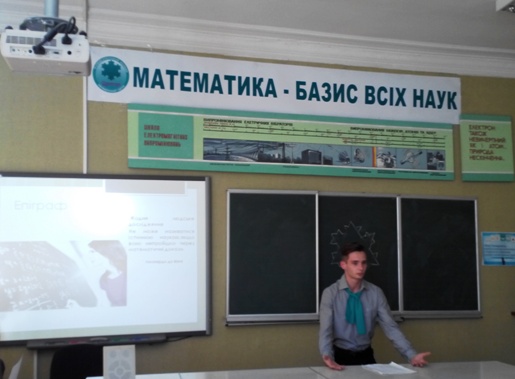 Студенти виступили з доповідями, в яких обґрунтували і презентували необхідність вивчення математики як фундаментальної дисципліни, як основи своєї майбутньої професії, зокрема: «Прикладна математика у менеджменті» (Бабич Олександра, ОВмс-1-14-4.Од) «Застосування математики у спорті» (Глей Андрій, ФВмс-1-13-4.Од), «Розвиток дослідницьких умінь студентів у процесів виконання ІНДЗ» (Попіль Леся і Дубенчук Олександра, ПОмс-1-12-4.Од), «Математика і мова» (Ільющенко Олександра, ПОмс-1-12-4.Од), «Математика в інформаційному середовищі» (Кіщук Іван, ВСмс-14-4.Од), «Роль математики в житті фінансиста» (Солоніна Діана, ФКмс 1-13.Од), «Математика і психологія» (Тарасевич Олександра, ПОмс-1-12-4.Од), «Математика в правознавстві» (Чернишенко Анна, ПРмс 1-14-4.Од).