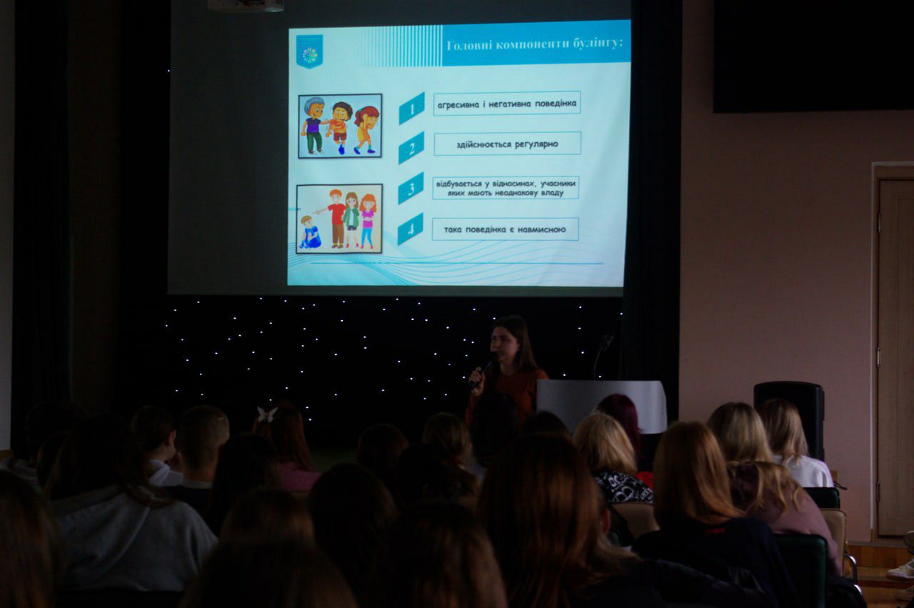 Практичний психолог коледжу Інна Миколаївна Вітер у першій частині зустрічі розповіла студентам і викладачам про природу виникнення булінгу, його основні форми — фізичну, психологічну, вербальну та кібербулінг, а також про наслідки для жертв, свідків і самих агресорів. Під час інтерактивного обговорення учасники заходу визначали, як розпізнати прояви цькування, і які кроки слід робити, щоб цьому запобігти.
