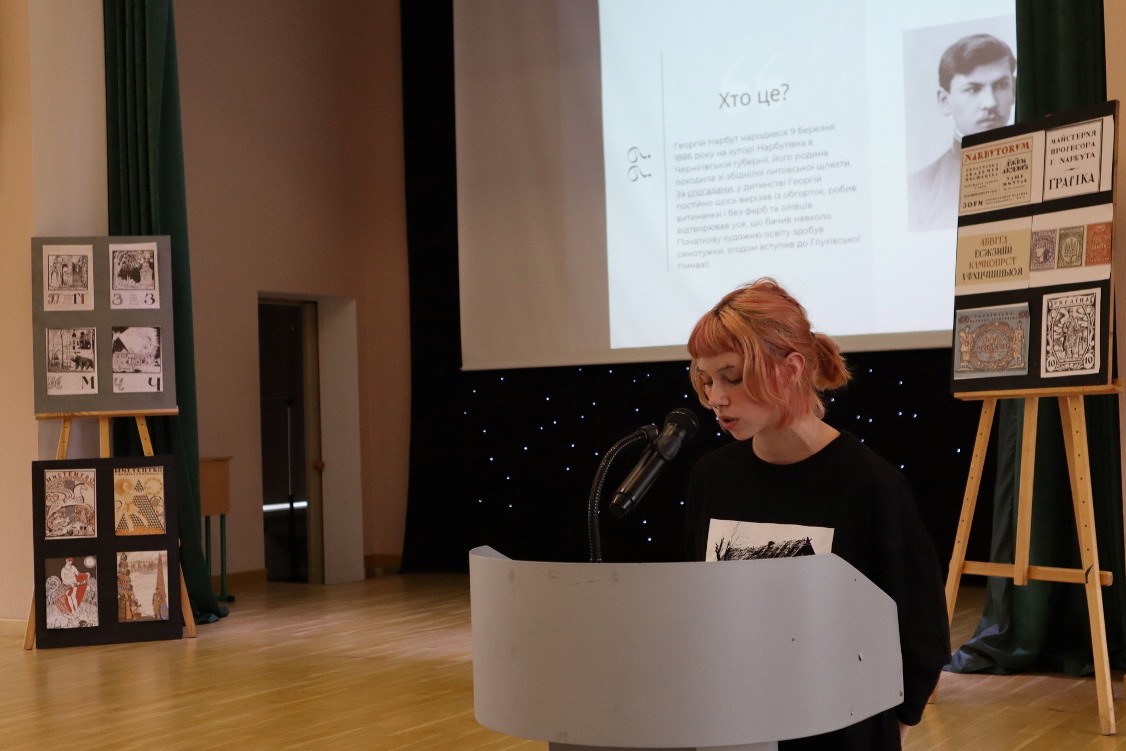 Слухачі дізналися про створення першої української абетки, ключові риси національного стилю Георгія Нарбута, його вплив на сучасний дизайн та візуальну культуру України. Вони мали змогу зануритися у багатогранний світ українського графічного мистецтва початку ХХ століття і спробувати себе у ролі шрифтових дизайнерів – створити власні графічні композиції, натхненні нарбутівською естетикою, поєднуючи орнаментальні мотиви, стилізовані літери та декоративні елементи.