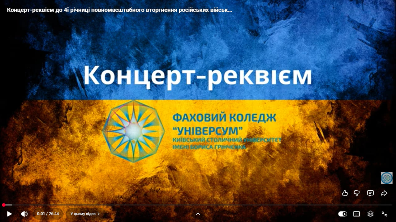 24 лютого 2026 року, до 4-ї річниці повномасштабного вторгнення російських військ на територію України, у Фаховому коледжі «Універсум» Київського столичного університету імені Бориса Грінченка відбувся комплекс виховних заходів, спрямованих на вшанування пам’яті загиблих у російсько-українській війні, осмислення подій воєнного часу та формування громадянської свідомості студентської молоді.