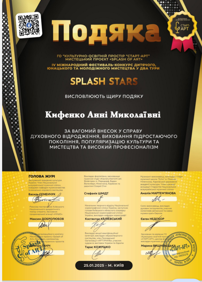 25.01.2025 року студентський хор "Tutti" взяв участь у ІV Міжнародному фестивалі-конкурсі дитячого, юнацького та молодіжного мистецтва SPLASH STARS, в якому здобув перемогу і отримав диплом І ступеня.