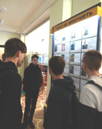 Студенти ознайомилися зі світлинами під час Революції Гідності, героями Небесної Сотні та учасниками бойових дій на території інших держав.
