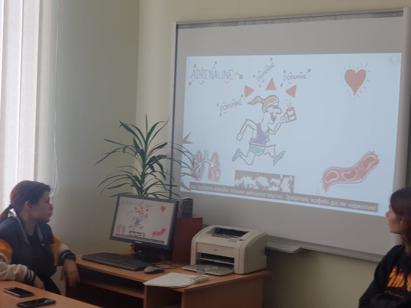 Під час перегляду презентацій та відео фрагментів, які підготували студенти групи ФВфмб-1-21-4.Од (Зуєва Поліна, Боковенко Ірина, Бардаш Тетяна, Шмат Руслана, Кирниченко Марк, Новіченко Катерина) студенти 1 курсу мали змогу виявити вплив кави на головний мозок та на організм підлітків. Як результат, відбулася цікава дискусія з приводу користі і шкоди кави для майбутніх спортсменів.