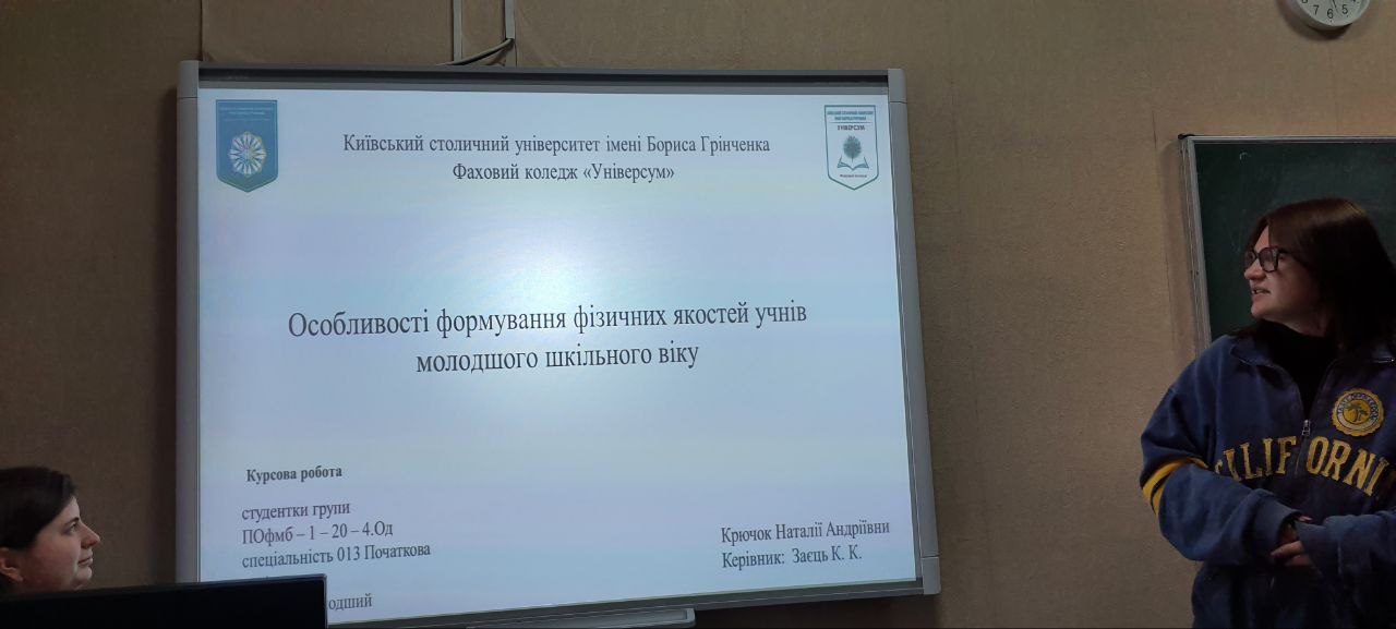 10 січня 2024 року у Фаховому коледжі «Універсум» Київського столичного університету імені Бориса Грінченка відбувся захист курсових робіт з дисципліни «Теорія і методика фізичного виховання» у здобувачів освіти 4 курсу спеціальності 013 Початкова освіта.