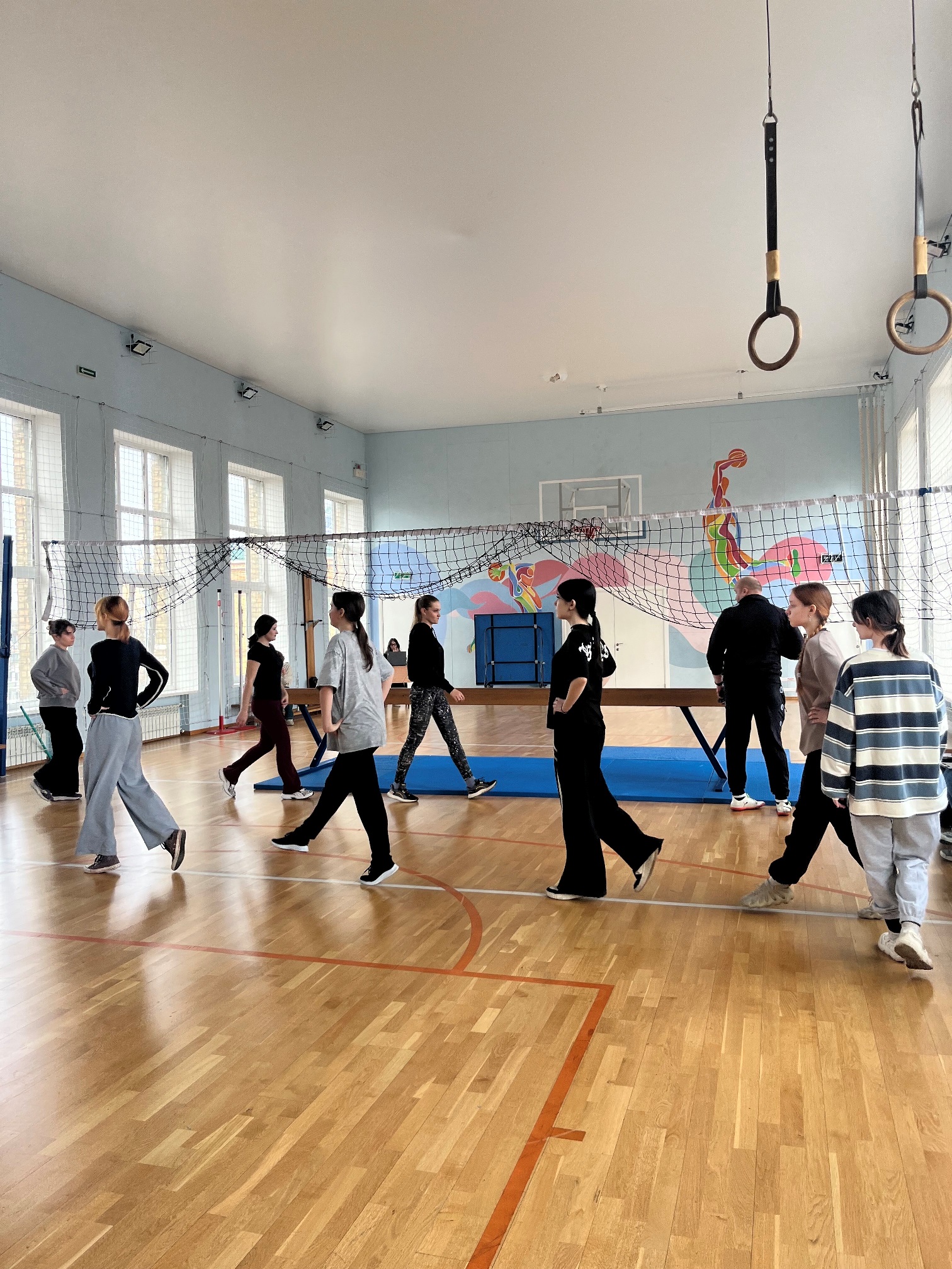 - Розвитку основних фізичних якостей (сили, швидкості, координації) через виконання гімнастичних вправ та роботу по станціях.