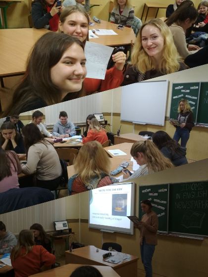 5 грудня 2019 році в Університетському коледжі Київського університету імені Бориса Грінченка було проведено тренінг-практикум «Фразеологізми в англійському бізнес-мовленні» для студентів груп ВСмс-1-16-4.0д та ПОмс-2-17-4.0д. Учасники познайомилися з різними видами ідіоматичних виразів, що є найуживанішими у друкованих засобах масової інформації, їх роллю та особливостями вживання.