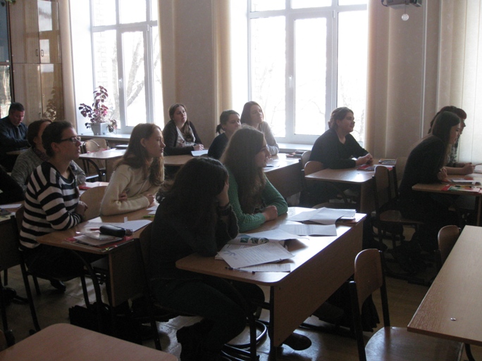 На занятті студенти під керівництвом викладача знаходили відповідність між причинами та наслідками екологічних і суспільних проблем,а також обговорювали можливі шляхи їх розв’язання. Майбутні викладачі образотворчого мистецтва творчо підійшли до підготовки до уроку, зобразивши своє бачення найактуальніших світових проблем у мистецьких проектах.