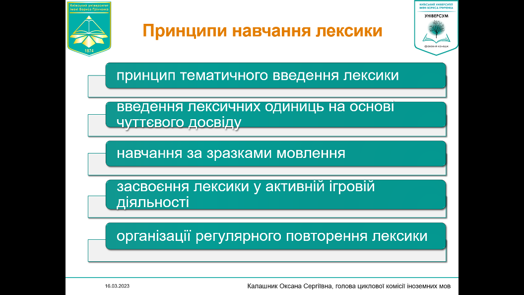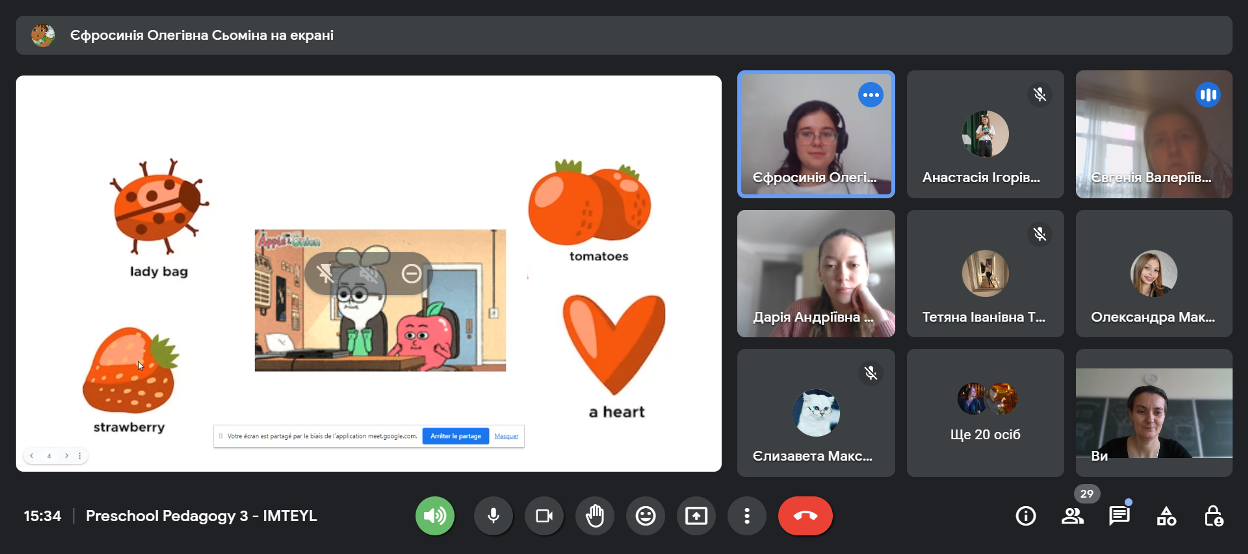 16 березня 2023 року для студентів ІІІ курсу спеціальності «Дошкільна освіта» було проведено воркшоп з формування мовних навичок у дітей дошкільного віку. На заході відбулася презентація різноманітних ігрових прийомів, які сприяють залученню дітей до іншомовного середовища, кращому запам'ятовуванню лексичних одиниць та тренуванню їх у мовленні.