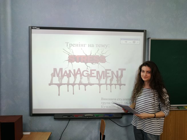 18 березня 2019 року в Університетському коледжі для студентів ІV курсу спеціальності Організація виробництва було проведено тренінг «Стрес-менеджмент». Під час якого учасники навчилися розрізняти різні види стресорів, що впливають на кожного, підбирати інструменти боротьби з ними та управляти власним життям без стресу.