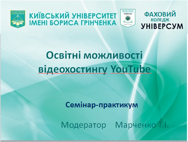 15.05.2020 було проведено семінар-практикум “Освітні можливості відеохостингу YouTube” для викладачів циклової комісії економіко-математичних дисциплін.