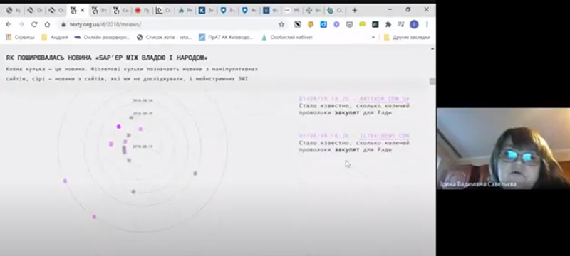 Журналістика даних - це вміння ставити питання до даних і знаходити на них відповідь. Де шукати відкриті дані та як їх візуалізувати – ці та інші питання розбирали на вебінарі 28 листопада зі студентами Фахового коледжу Київського університету імені Бориса Грінченка. Захід був проведений викладачем коледжу Савельєвою І.В. в межах проєкту «Використання даних у боротьбі проти маніпуляцій та дезінформації», який реалізує Чеська громадська організація Асоціація з міжнародних питань (AMO) у співпраці з «Інтерньюз-Україна» та Texty.org.ua.