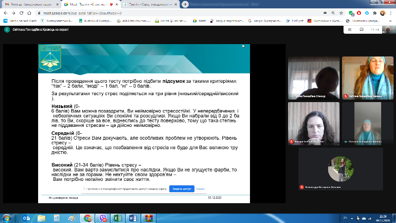 09 грудня 2020 року для викладачів Фахового коледжу «Універсум» відбувся тренінг «Стрес-менеджмент: чи можливо управляти стресом?».