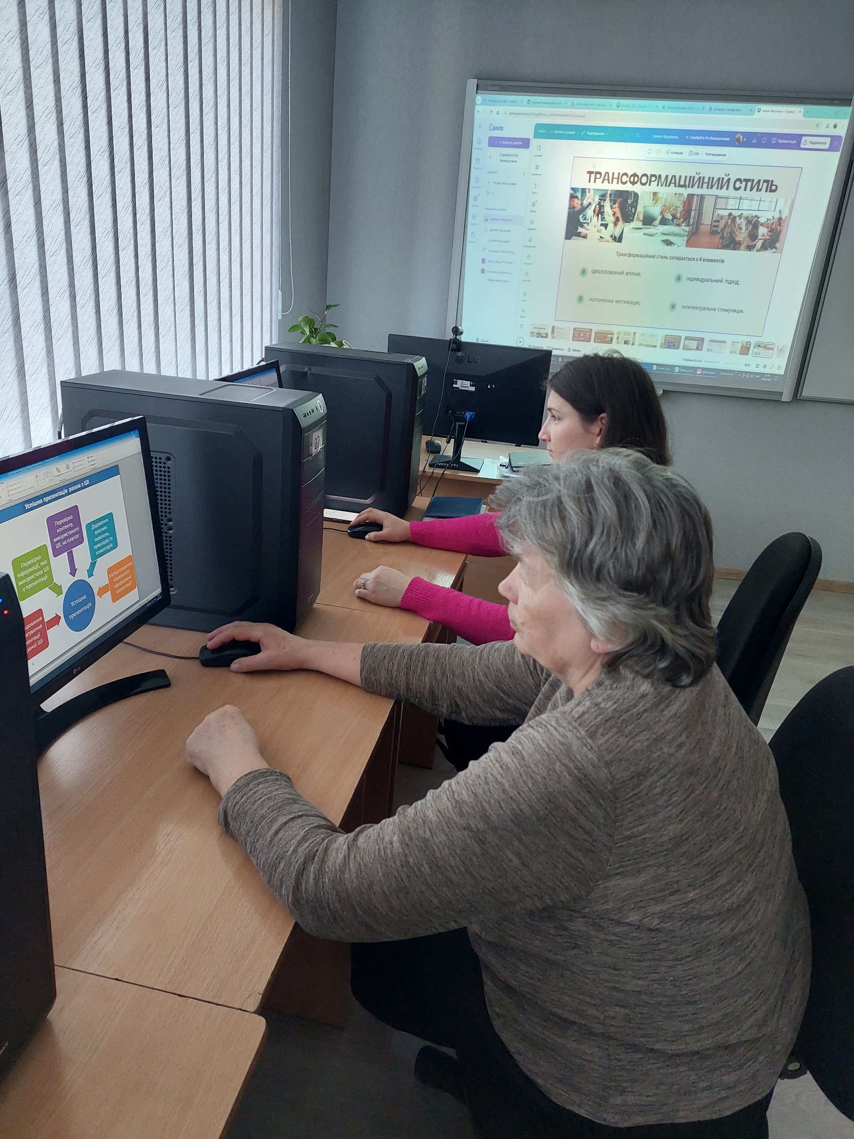 Під час заняття було розглянуто можливості онлайн сервісів Gamma та Canva для створення інтерактивних презентацій, їх переваги та недоліки.