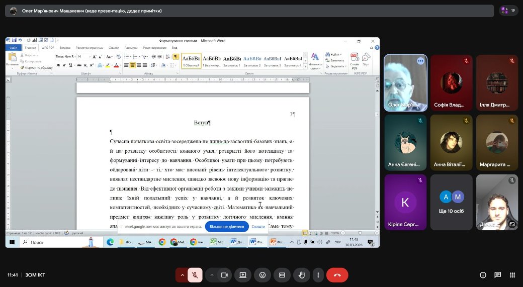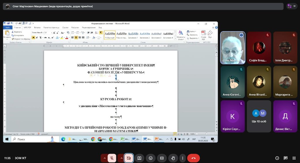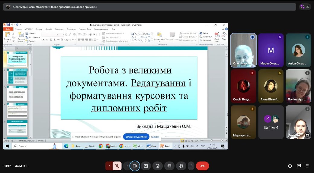 30 березня 2026 р. в рамках заходів декади циклової комісії економіко-математичних дисциплін і менеджменту відбувся семінар-практикум «Робота з великими документами. Редагування і форматування курсових та дипломних робіт» для студентів 3 курсу спеціальності образотворче мистецтво та викладачів.