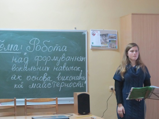 4 грудня 2015 року о 14.40 год в аудиторії № 45 відбулося відкрите заняття з постановки голосу викладача Наталії Леонідівни Кравченко зі студенткою ІІІ курсу Наталією Прокопович на тему: «Робота над формуванням вокальних навичок, як основа виконавської майстерності».