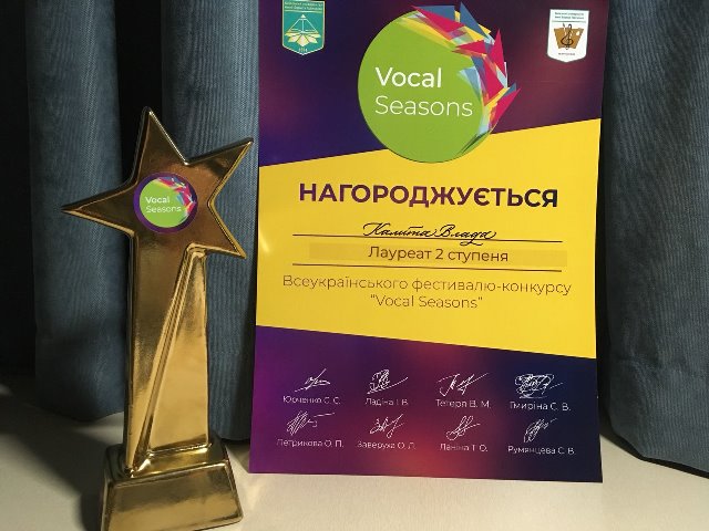 Також вітаємо Садову Яну студентку 4 курсу спеціальності «Музичне мистецтво» з Дипломом Лауреата І ступеня в номінації «Академічний вокал» (клас викладача Голян Х.В., концертмейстер Бухарєв О.А..), Калиту Владу, студентку 2 курсу спеціальності «Музичне мистецтво» з Дипломом Лауреата ІІ ступеня в номінації «Академічний вокал» (клас викладача Маєвської А.С., концертмейстер Паляниця Н.Є.) та Оладько Діану, студентку 2 курсу спеціальності «Музичне мистецтво» з Дипломом Лауреата ІІ ступеня в номінації «Академічний вокал» (клас викладача Кравченко С.С., концертмейстер Паляниця Н.Є.).