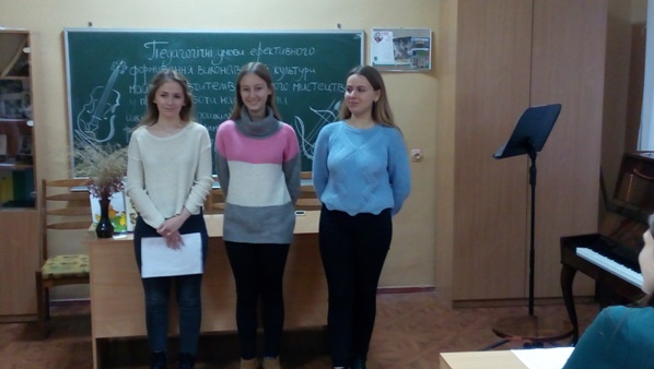 Теоретична частина заходу органічно доповнювалась іллюстрацією музичних зразків. Інструментальні та вокальні твори шкільного і дошкільного репертуару виконувались студентами спеціальності "Музичне мистецтво".