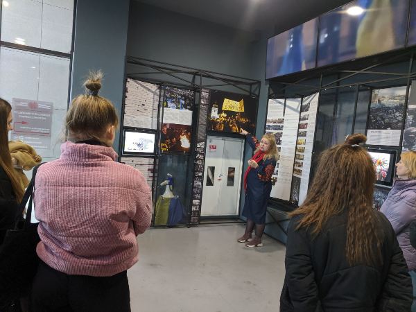 21 лютого студенти 1 і 3 курсів спеціальності "Хореографія" відвідали Національний меморіальний комплекс Героїв Небесної Сотні - музей Революції Гідності. Змістовна розповідь екскурсовода, експонати музею, аудіозаписи дали уявлення про трагічні події на Майдані в той нелегкий для нашої країни час.