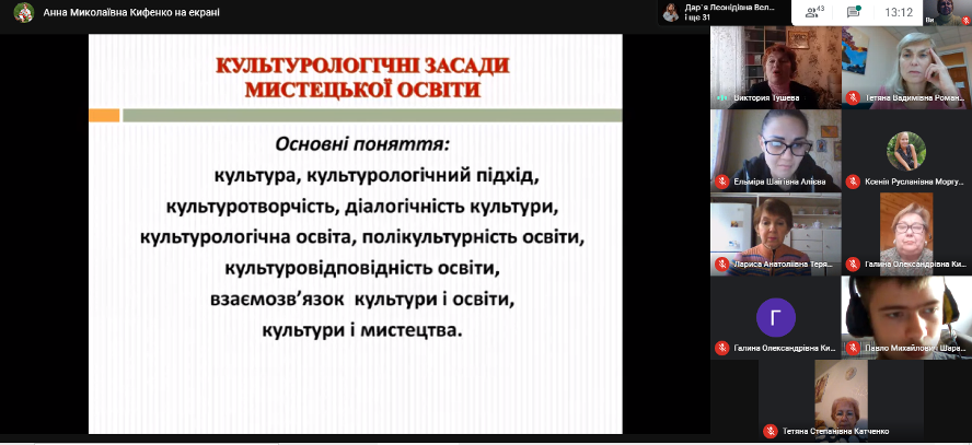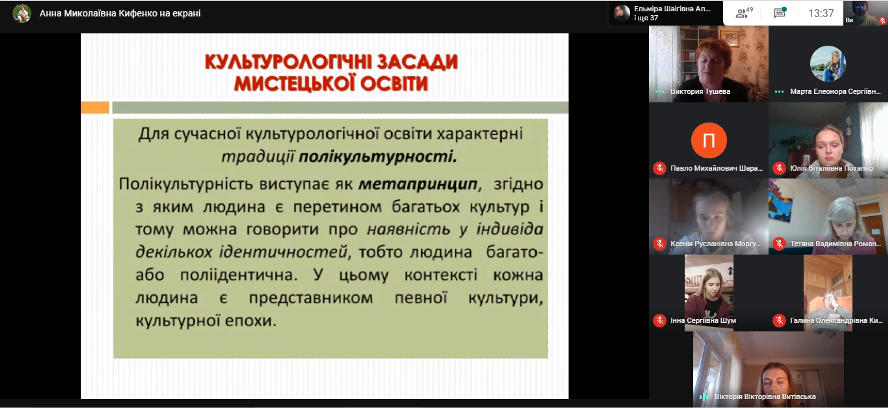 3 грудня 2020 року відбулася гостьова лекція доктора педагогічних наук, професора кафедри теорії і методики мистецької освіти Харківського національного педагогічного університету імені Г. Сковороди Тушевої В.В. на тему «Культурологічні засади мистецької освіти».