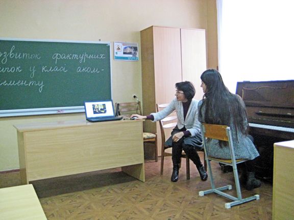 4 грудня відбулося відкрите заняття з навчальної дисципліни "Акомпанемент" викладача Куцан О.Г. зі студенткою ІІ курсу спеціальності "Музичне мистецтво" Рузметовою Юлією. Тема заняття "Розвиток фактурних навичок у класі акомпанементу" охоплювала проблеми підбору акомпанементу до пісень педагогічного репертуару. В процесі заняття були продемонстровані методи розвитку гармонійного слуху, вправи для оволодіння клавіатурою, фактурні вправи. Крім того, була показана робота над формуванням концертмейстерських навичок на прикладі російського романсу "Утро туманное" (муз. А.Абаза, сл. І.Тургенєва).