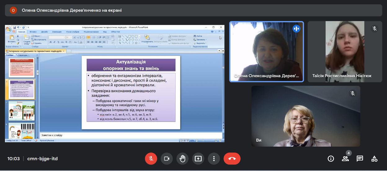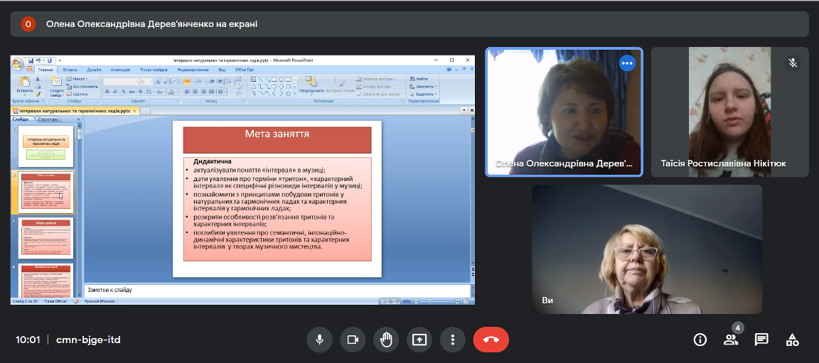 09.12.2022 року відбулося відкрите заняття викладача Дерев’янченко О.О. з навчальної дисципліни «Елементарна теорія музики» на тему «Інтервали натуральних і гармонічних ладів». Заняття проводилось з групою ММфмб-1-21-4.0д.