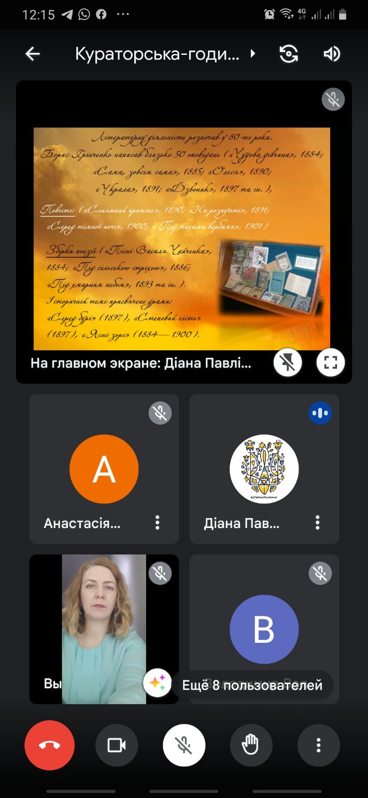 08.12.2022 року у групі ХОРфмб-1-21-4.0д відбулася кураторська година на тему «Він більше працював, ніж жив». Захід присвячений вшануванню пам’яті видатного українського письменника, педагога, літературознавця, етнографа, історика, публіциста, громадсько-культурного діяча Бориса Дмитровича Грінченка.