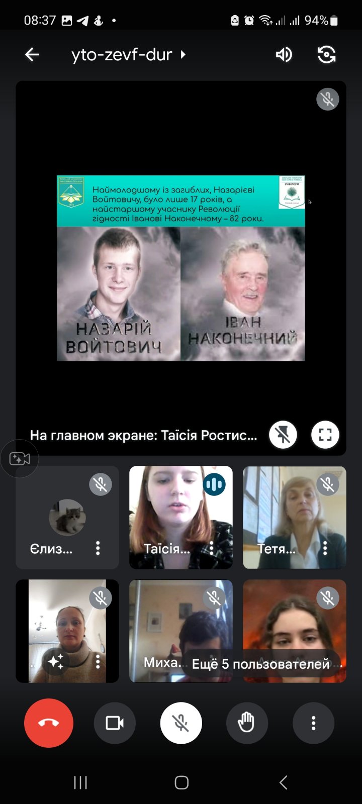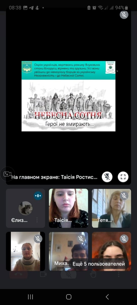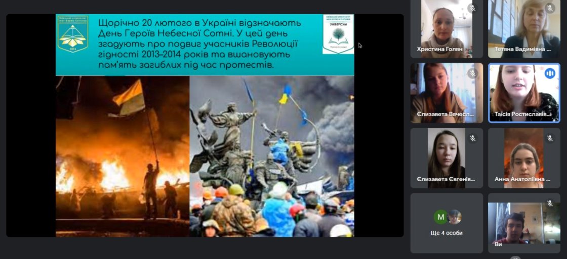 Вшанування пам'яті Героїв Небесної Сотні 20.02.2023 р. у групі ММфмб-1-21-4.0д проведено тематичну годину, присвячену вшануванню подвигу учасників Революції Гідності та увічненню пам'яті Героїв Небесної Сотні. Модератори - Романова Тетяна Вадимівна, Голян Христина В'ячеславівна. Вшанування пам'яті Героїв Небе... Вшанування пам'яті Героїв Небе... Вшанування пам'яті Героїв Небе... Вшанування пам'яті Героїв Небе... Вшанування пам'яті Героїв Небе... Вшанування пам'яті Героїв Небе...