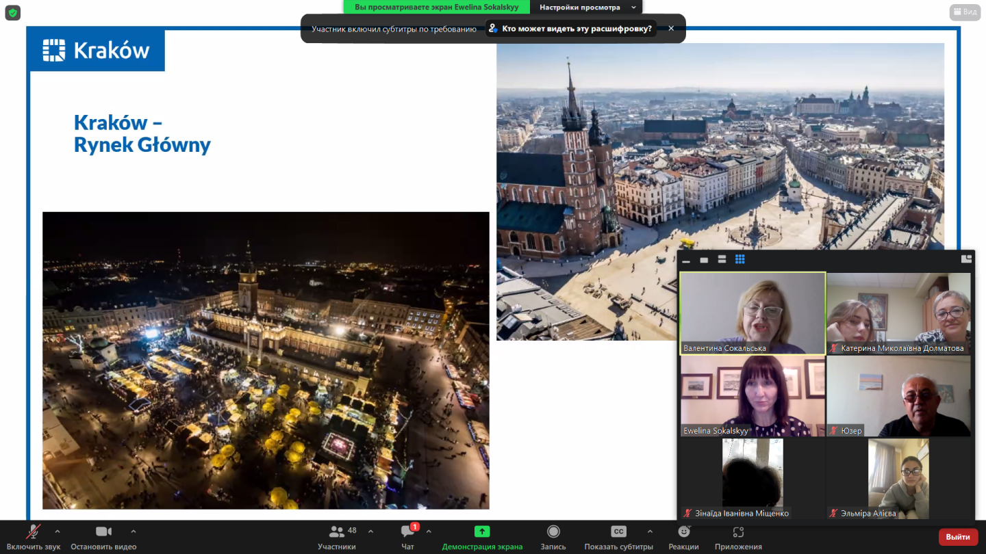 Цікаві презентації з видами Кракова, його історичними пам’ятками, чудова старовинна і сучасна музика полонили присутніх своєю неповторністю і розмаїттям.