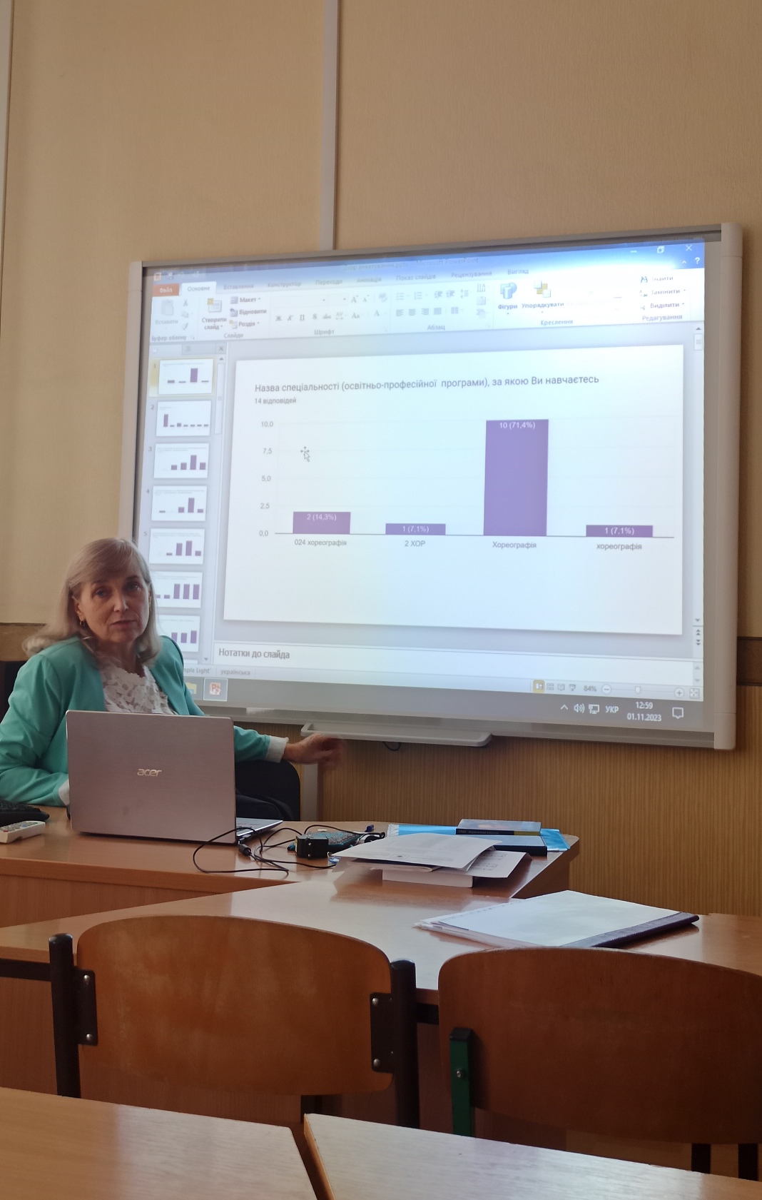 - Результати анкетування студентів спеціальностей «Хореографія» та «Музичне мистецтво» щодо визначення рівня задоволеності здобувачів освіти якістю освітніх послуг.