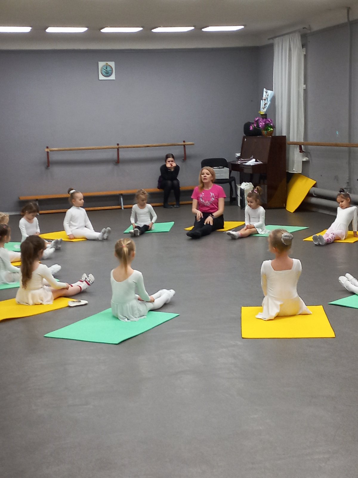 Студенти із зацікавленістю спостерігали за перебігом заняття в молодшій віковій групі (3-5 років), яке проводила керівник колективу Скрипник Є.В. Досвідчений педагог-хореограф поділилася знаннями, вміннями; надала практичні поради щодо організації занять в різних вікових групах дитячого хореографічного колективу.