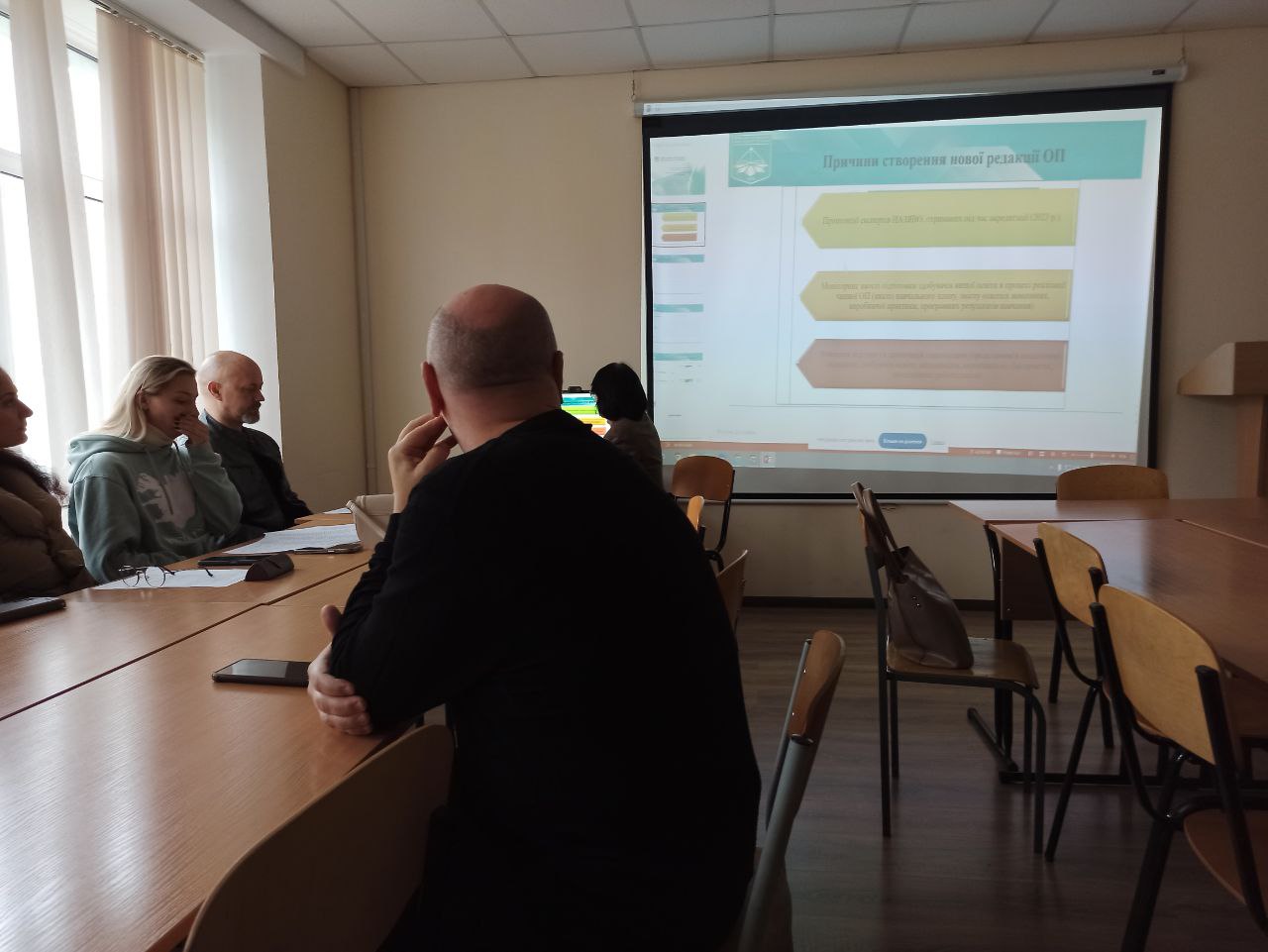 Викладач кафедри Анна Хмельова детально розповіла про профорієнтаційну роботу, яка проводиться співробітниками кафедри хореографії для залучення абітурієнтів до вступу в університет Грінченка. Також було запропоновані спільні дії з роботодавцями з посилення цього напрямку.