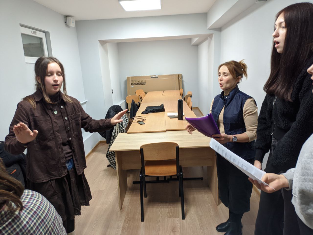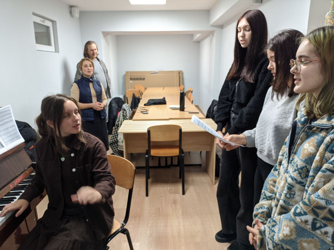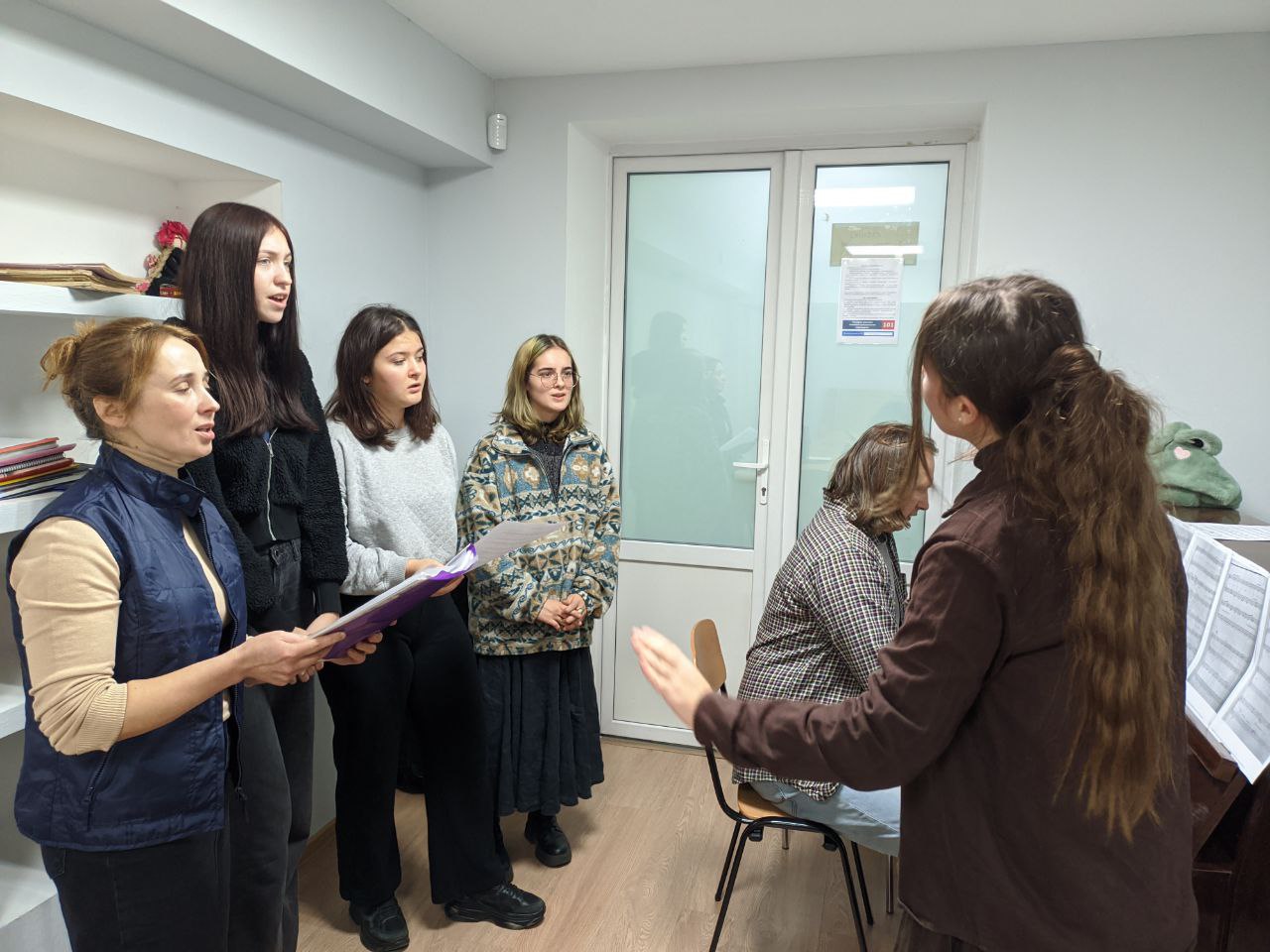 Студентки серед своїх одногрупниць самостійно випробували себе у якості хорового диригента. Вправно продемонстрували навички диригування вокальним ансамблем хорових творів М. Леонтовича, гру хорової партитури, спів хорових партій.