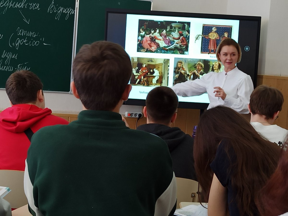 Під час спостереження уроку музичного мистецтва у 3-Б класі, який проводила вчитель П’ясецька Наталія Вікторівна, студенти мали змогу закріпити та поглибити знання з методики музичного виховання в школах щодо форм, методів, прийомів роботи, видів музичної діяльності тощо в умовах конкретного освітнього середовища. Спостерігаючи за перебігом уроку з дисципліни «Мистецтво» у 8 класі, студенти із захопленням стежили, як майстерно досвідчений педагог, директор школи Устич Неллі В’ячеславівна демонструє володіння технологіями інтегрованого навчання, що забезпечують формування цілісного художньо-естетичного світогляду учнів через взаємозв'язок музичного, образотворчого та інших видів мистецтва і спрямовані на розвиток у школярів критичного мислення, творчої самореалізації та емоційного інтелекту.