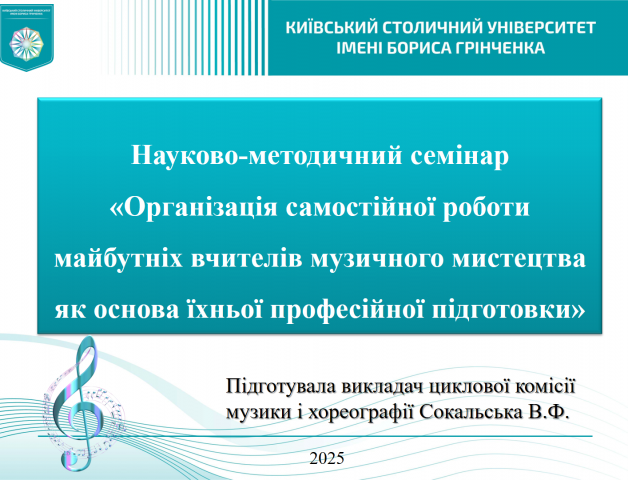 08.12.2025 року відбувся науково-методичний семінар «Організація самостійної роботи майбутніх учителів музичного мистецтва як основа їхньої професійної підготовки», підготовлений і проведений Сокальською В.Ф.