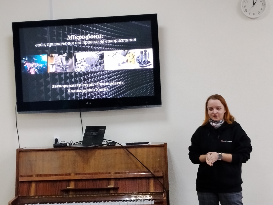 11.12.2025 року для студентів спеціальності «Музичне мистецтво» відбулися майстер-класи на теми «Поняття високої позиції звуку. Однорідне формування голосних у високій вокальній позиції» від артистки Київського Ансамблю Солістів «Благовість» Яни Садової та «Мікрофони: види, призначення та правильне використання» від звукорежисера студії «Postmodern» Уляни Холохоренко.